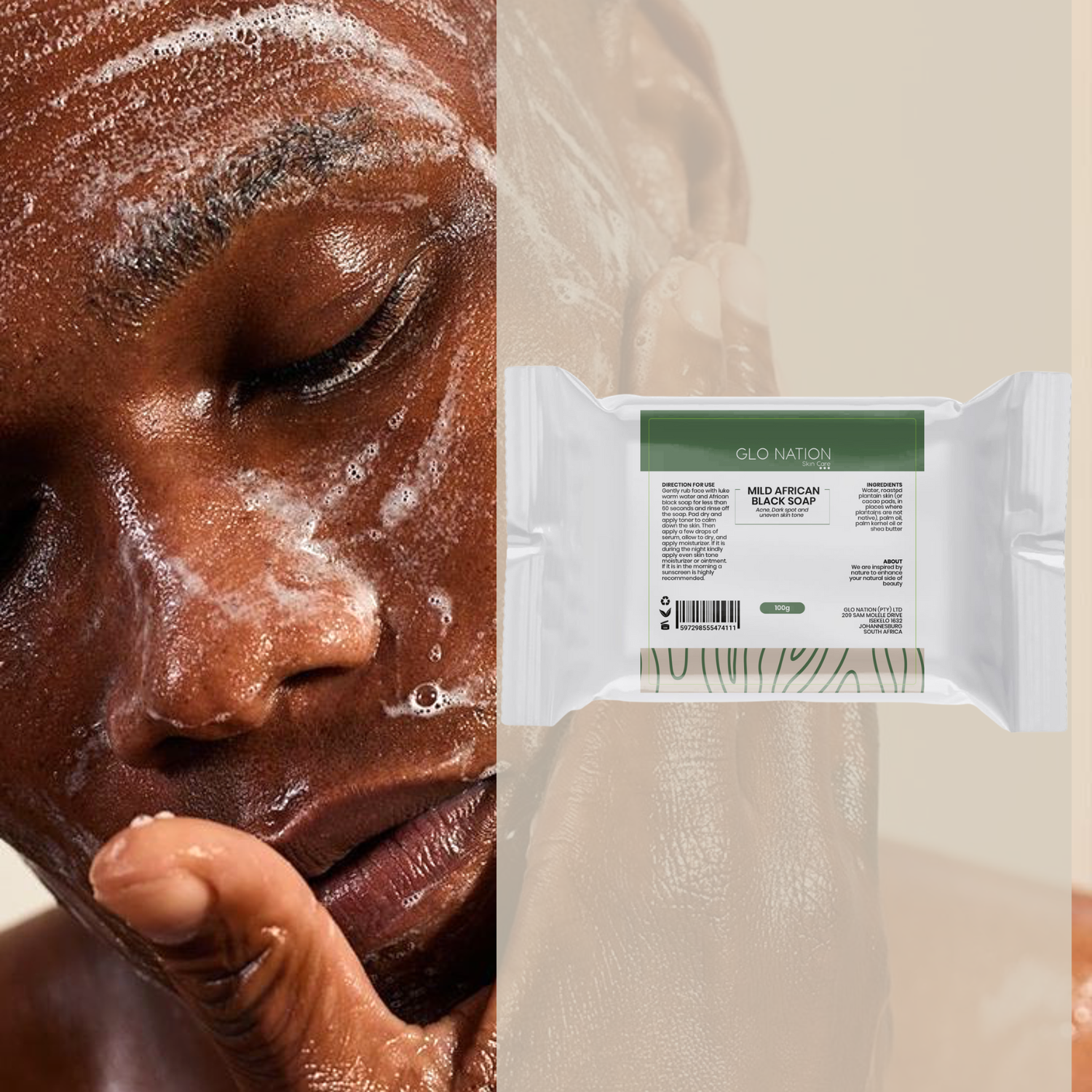 Made with unrefined shea butter, tea tree oil, cocoa butter, cocoa pod ash, plantain skin, palm bunch ash, aloe vera, virgin coconut oil, and purified water. This soap removes bacteria, deep cleans, gently exfoliates, prevents razor burn, treats mild rashes and fungus, and moisturises without stripping natural oils. Use daily for smooth, healthy skin.