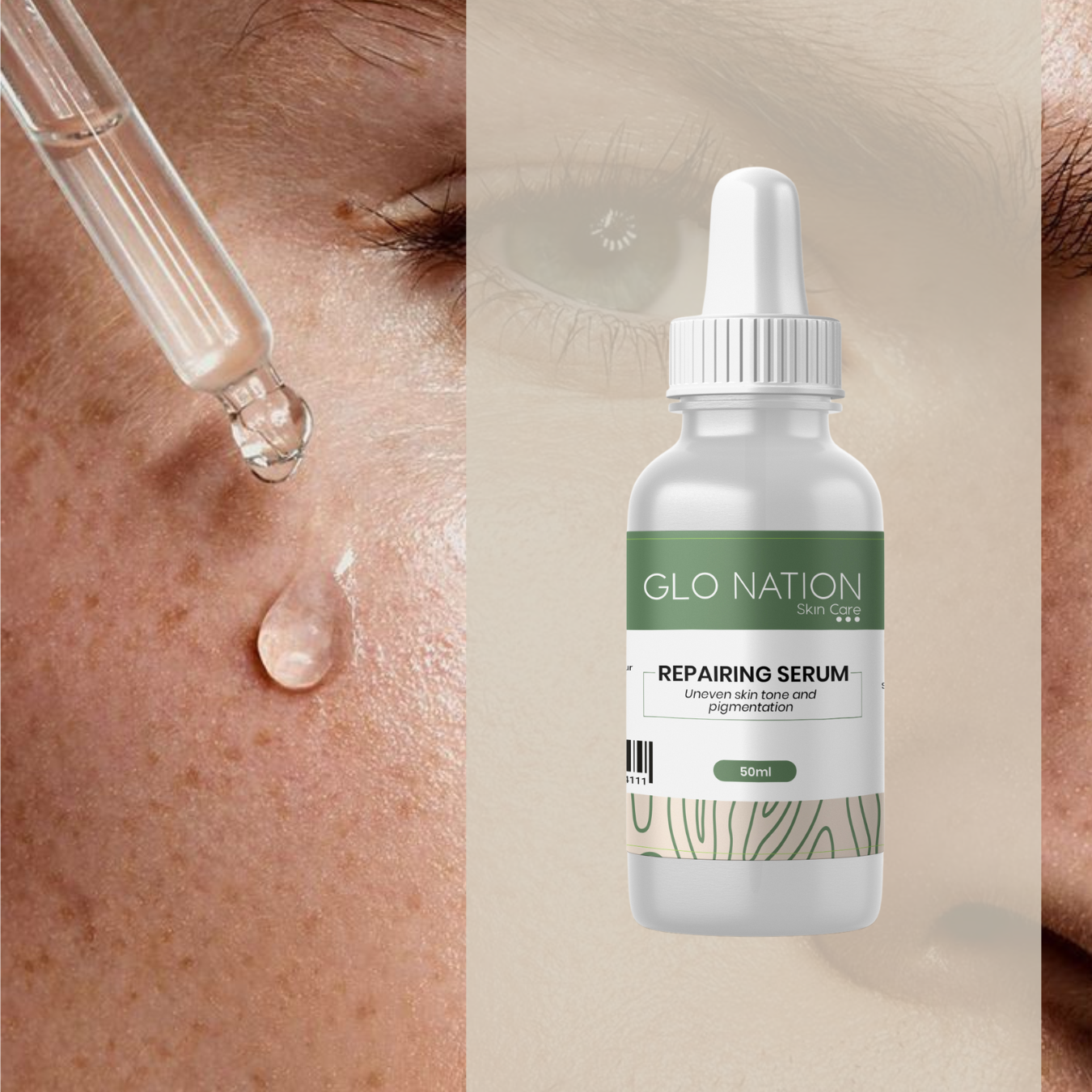 Our Repairing Serum contains Vitamin A, Vitamin C, Vitamin E, Jojoba Oil, Hyaluronic Acid, and Glycolic Acid. This powerful blend hydrates, brightens, refines texture, and smooths fine lines, leaving your skin visibly clearer, healthier, and beautifully radiant.